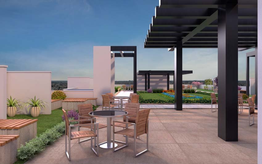 A serene rooftop swimming pool offering resort-style relaxation with panoramic views.